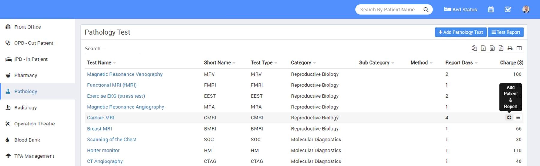 Pathology module is for managing patient pathology test and reports.