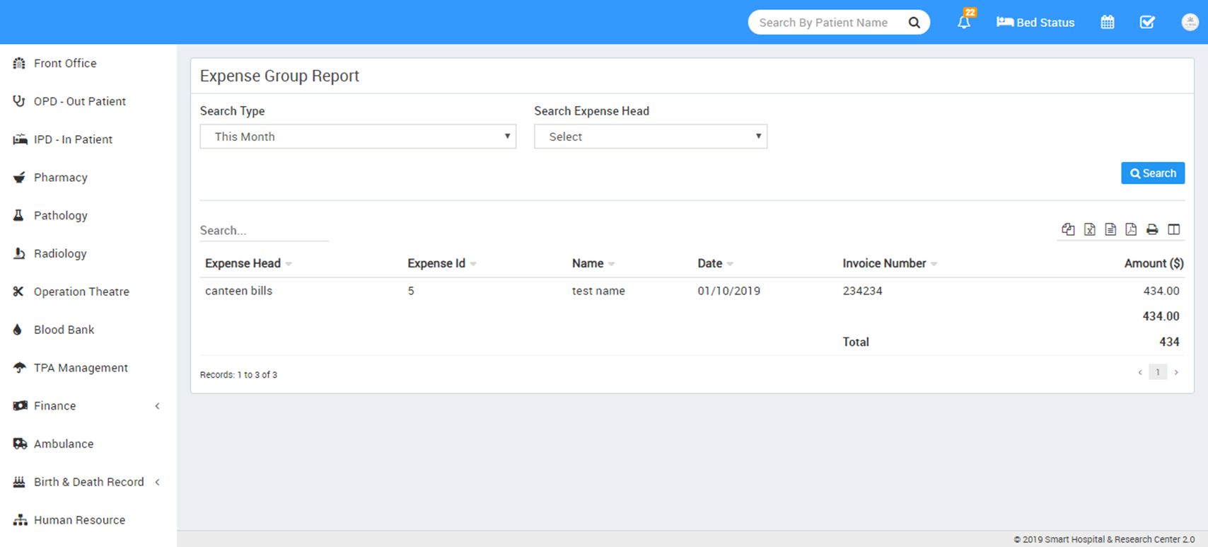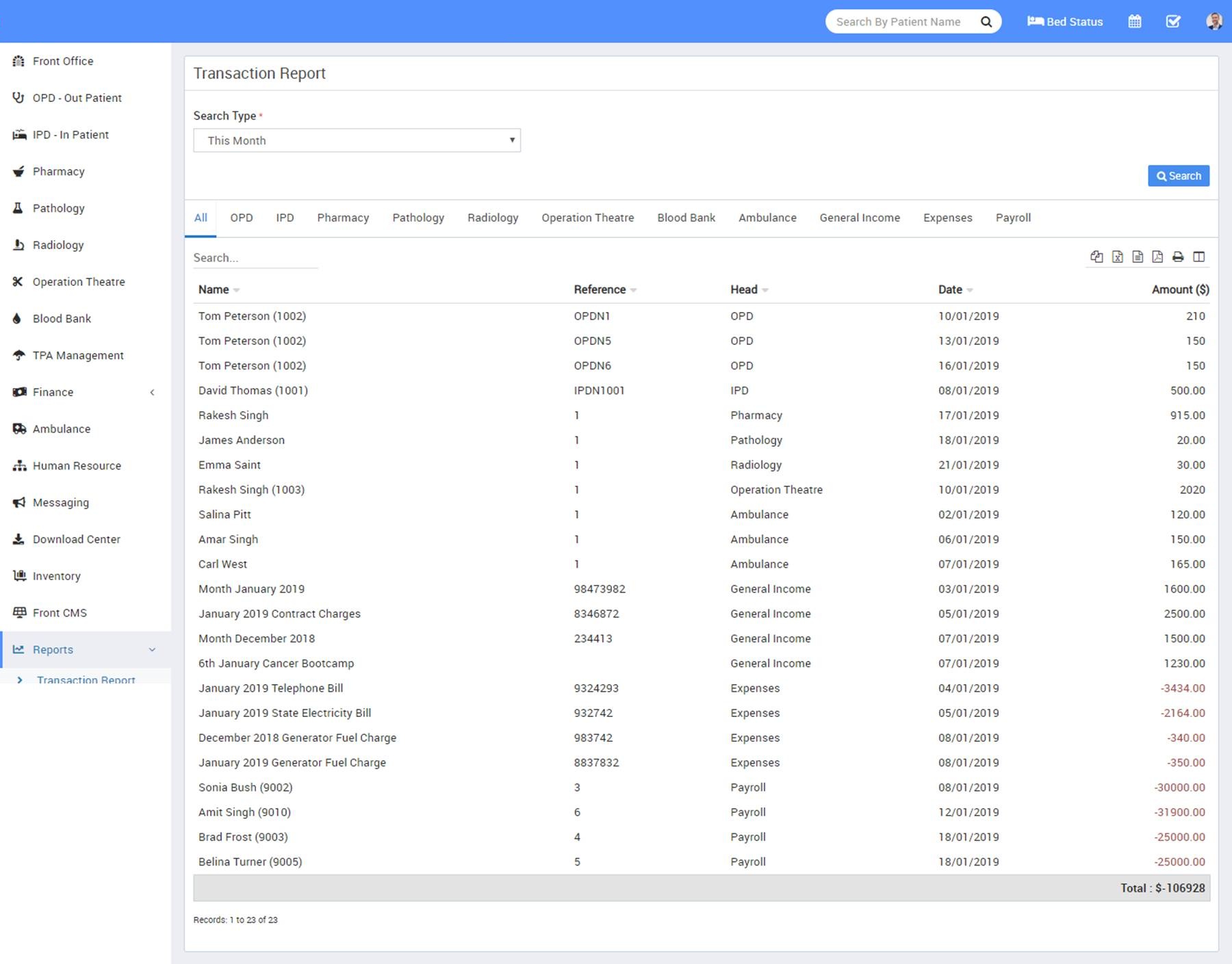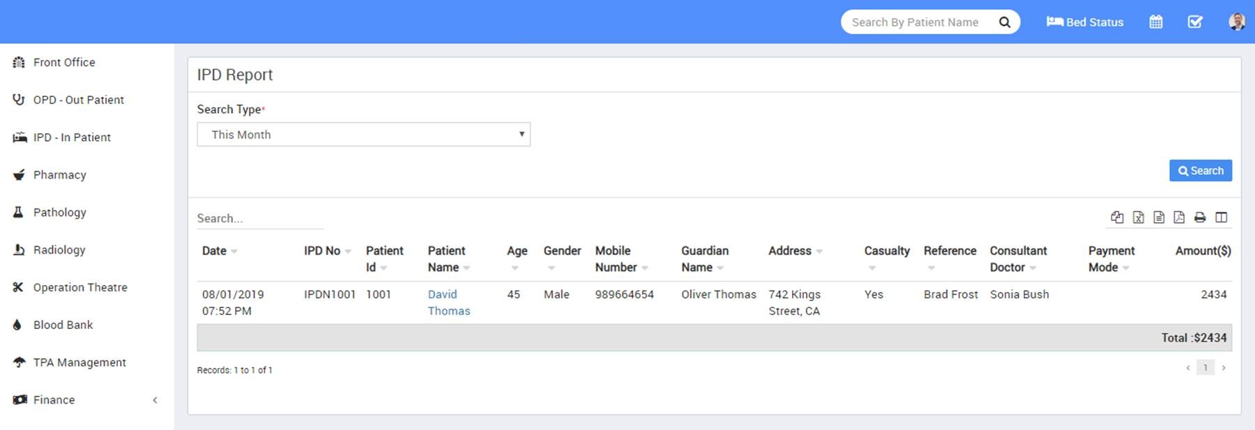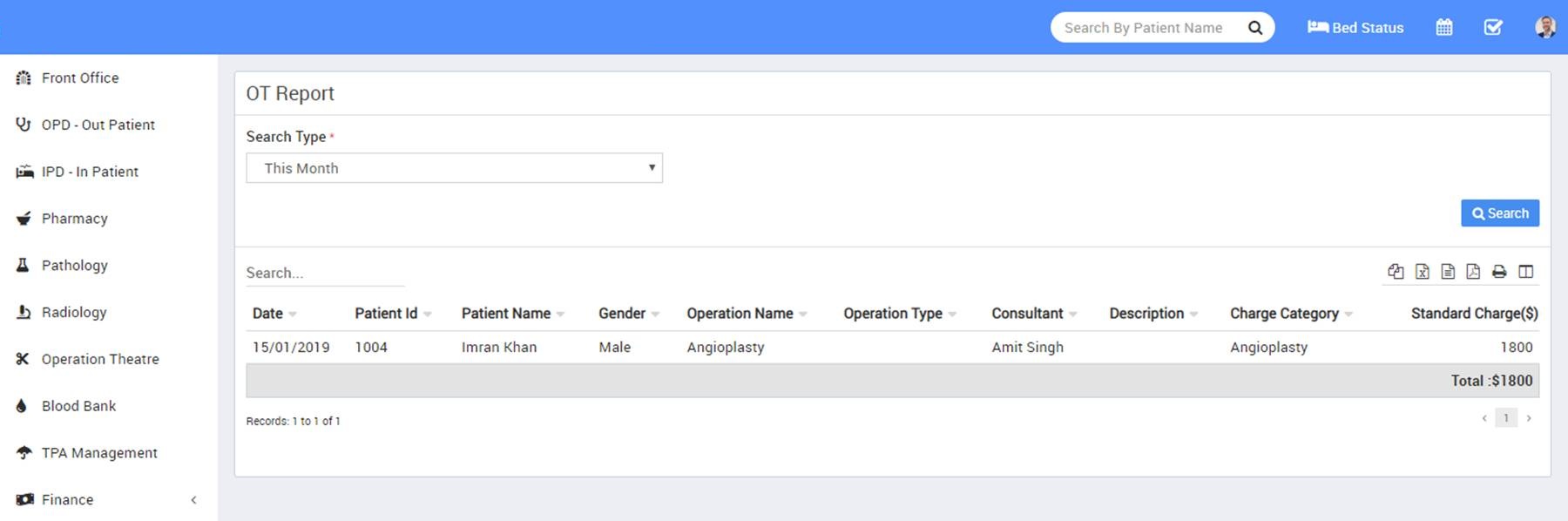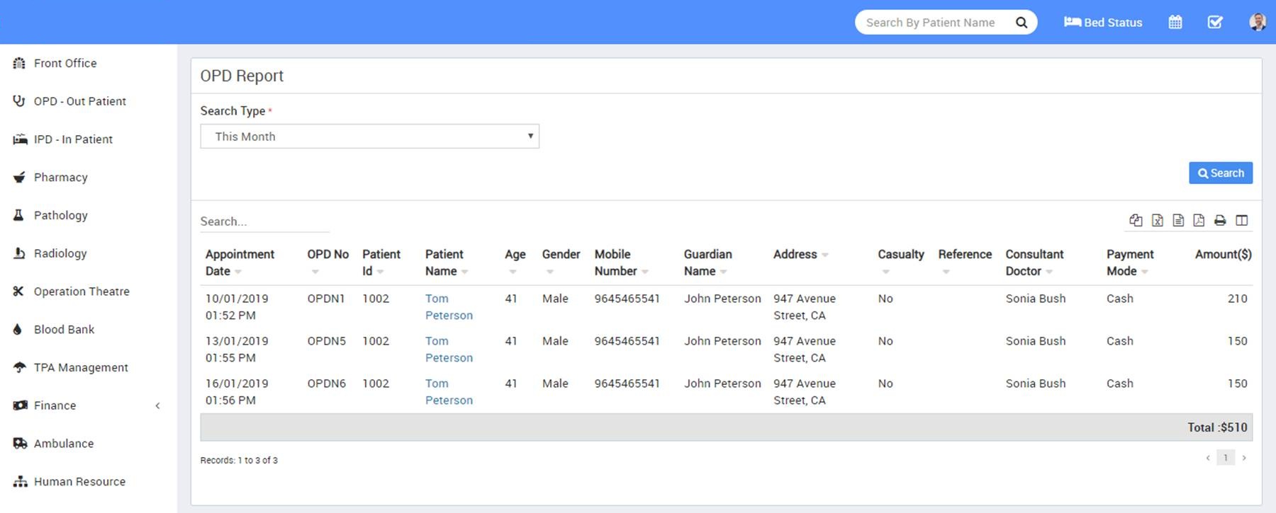- OPD Report – Here in search type you can select different time intervals for report data. Also you can download this report as PDF.