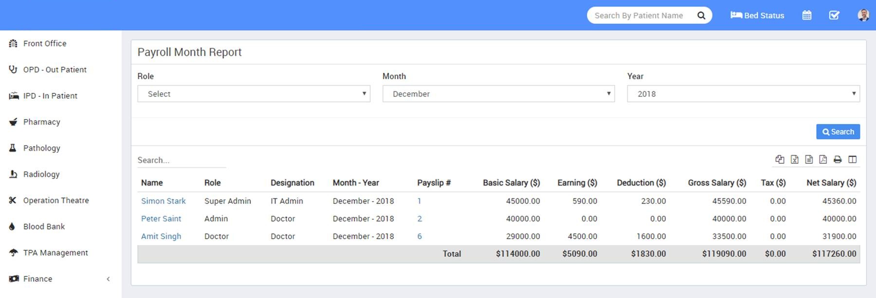 - Payroll Month Report – Here you can select different month and year for report data. Also you can download this report as PDF.