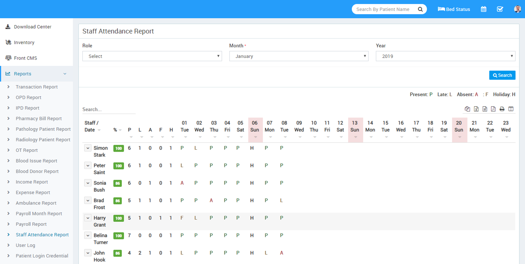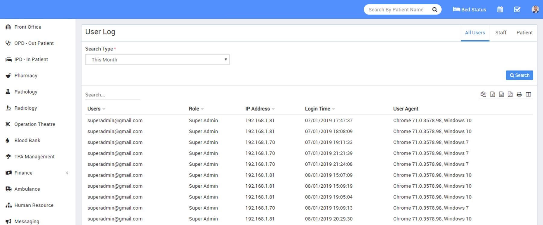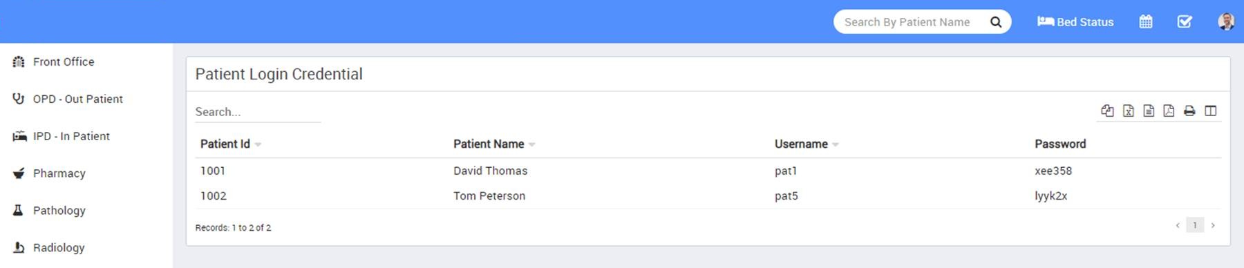 - Patient Login Credential – Here in search type you can select different time intervals for report data. Also you can download this report as PDF.